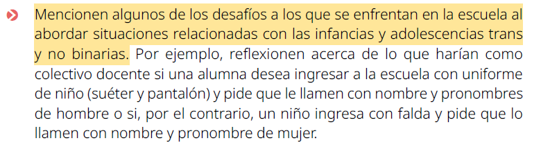 En la práctica, esto significa que no pueden cuestionar las prácticas o deseos de los alumnos y deben permitir que estos “expresen libremente su identidad”.