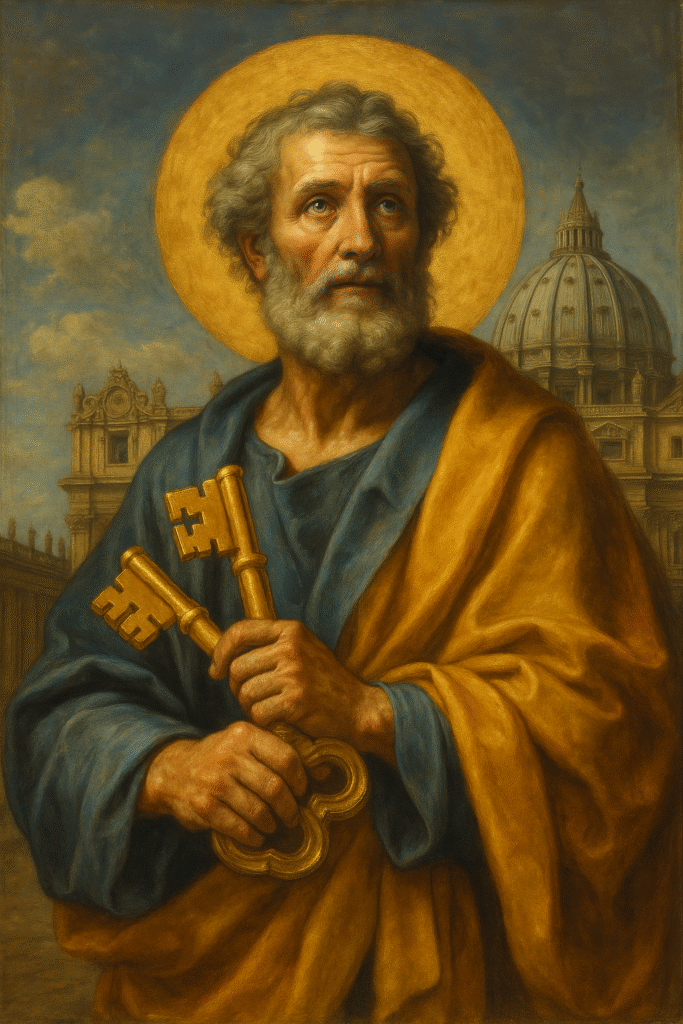 Simón, llamado más tarde Pedro por Jesús, nació en Betsaida y vivía en Cafarnaúm, donde se dedicaba a la pesca en el lago de Tiberíades. Junto a su hermano Andrés, fue invitado por el Maestro a dejar las redes y seguirlo, convirtiéndose en uno de los primeros discípulos de Cristo. Junto a Santiago y Juan, fue testigo de momentos clave del Evangelio: la resurrección de la hija de Jairo, la transfiguración en el monte Tabor y la agonía de Jesús en Getsemaní.
